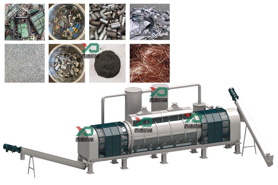 電子垃圾送入連續(xù)式炭化爐中,將表層的塑料炭化,提煉出銅或者鋁等金屬物資,這種金屬市場上幾萬一噸,為客戶增加不少的效益保障!