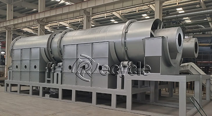 1. 自動化程度高:將物料投入破碎器,自動完成破碎處理與上料,通過輸料帶將物料送入爐內(nèi)。物料在爐內(nèi)不斷旋轉(zhuǎn)前進(jìn),受熱均勻,脫離表面漆層與雜質(zhì),最后從出料口排出,整個過程無需人工干預(yù)。